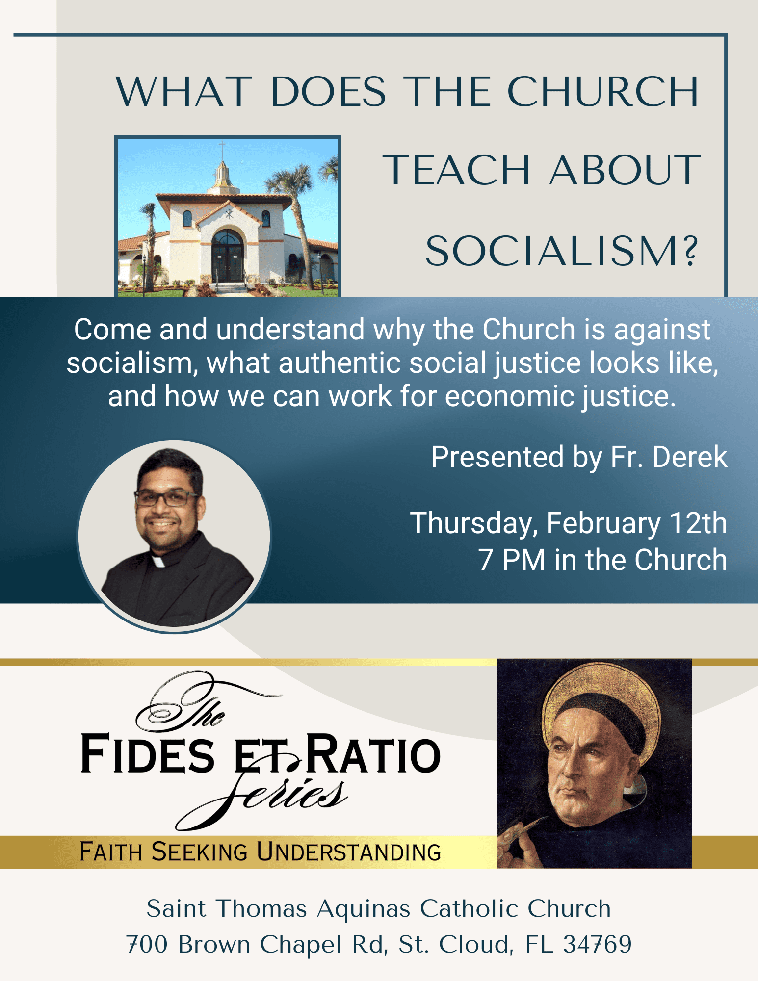 St. Thomas Aquinas Catholic Church seeks to carry forward the Great Commission to make disciples, given to us by our Lord Jesus Christ in Matthew 28:19-20. We will do so by focusing on Liturgy and Worship, Evangelization and Outreach and Stewardship.